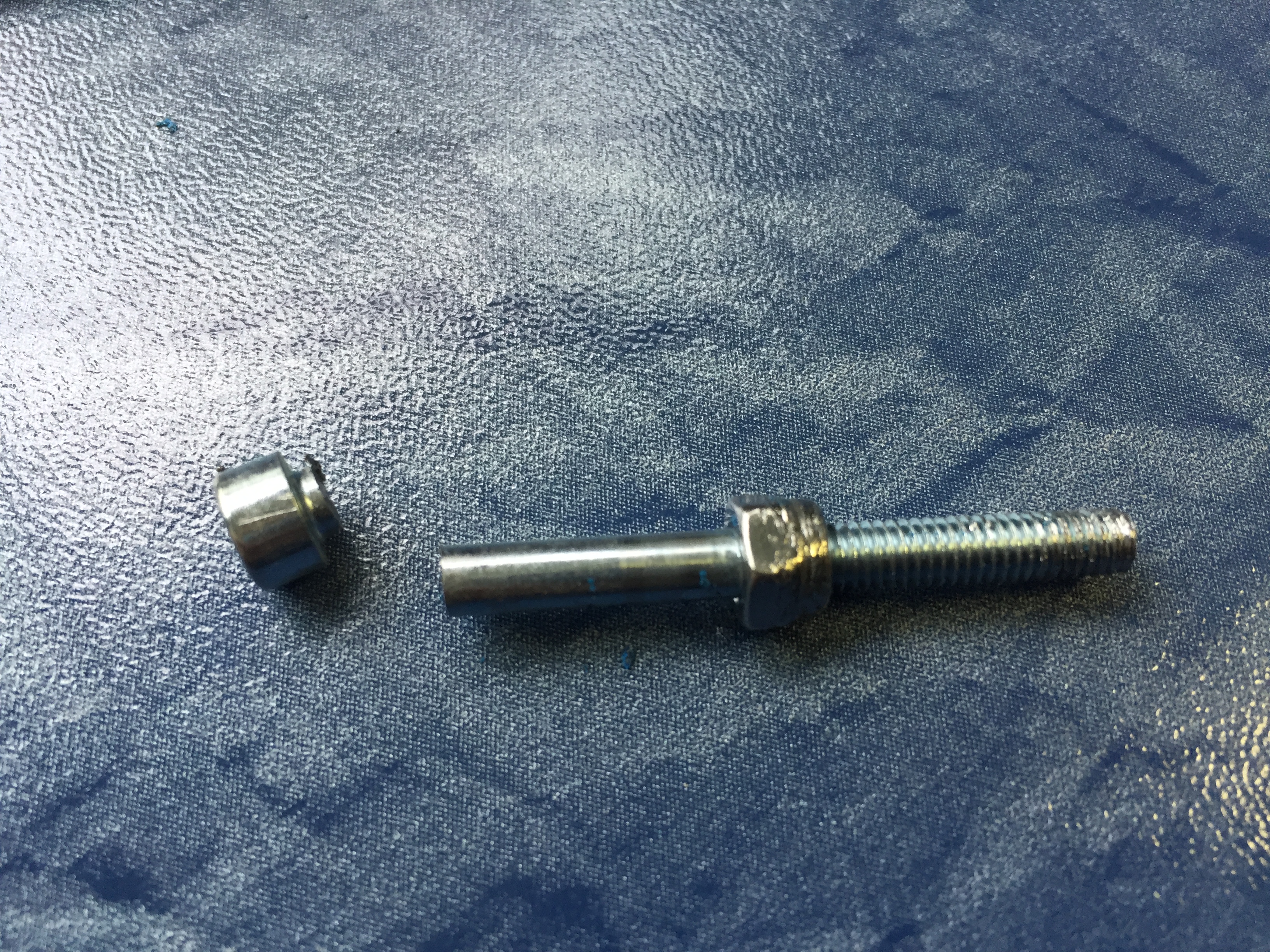 Da das Plastik zu weich war um die Locknut zu halten und die Spitz-Zangen nur sehr schwer die Mutter erreichen konnte, haben wir zum Schluß die Schraube abgesägt und durch eine kürzere ersetzt. Für den Extruder mussten wir eine andere Schraube kaufen.